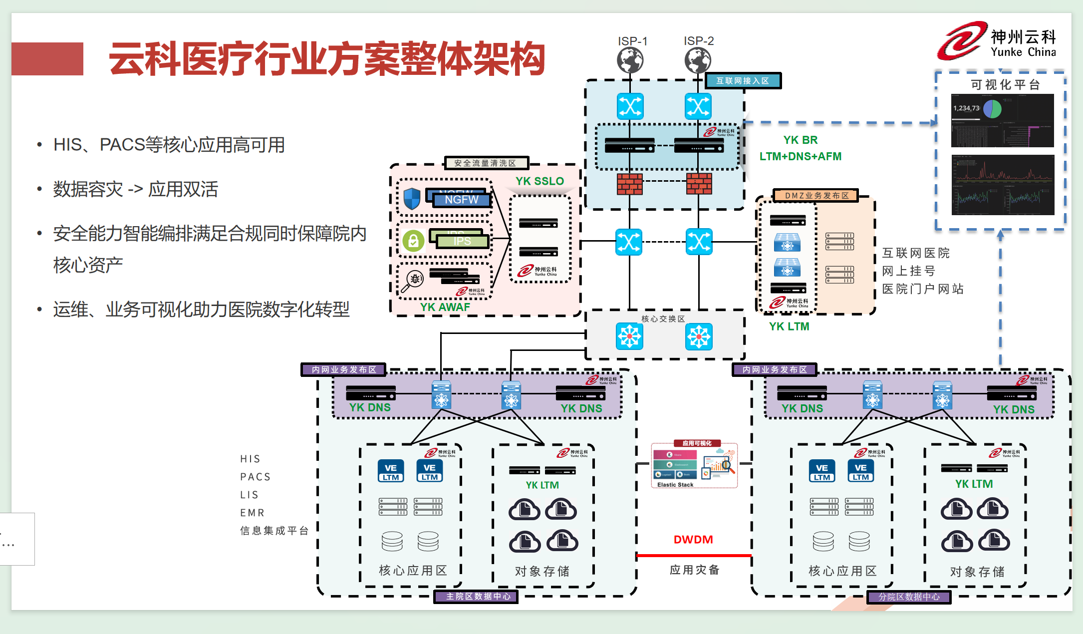 在电子病历4升5,以及互联互通五乙的评审要求中,均提出了核心系统RTO/RPO提出了小于15分钟的要求。森林舞会官网应用双活解决方案,拥有国内最多的双活实施案例,帮助医院用户轻松实现HIS、PACS、EMR等核心应用在单院区出现故障时的快速转院区访问,保障了医院应用系统的高可用性和高可靠性。